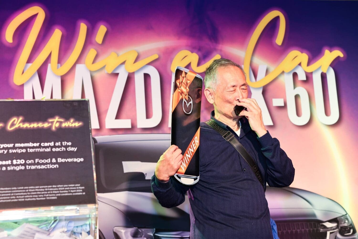 WHAT A NIGHT! Congratulations to Member Yi Zhu whose entry ticket was the lucky one pulled out of the ‘Win a Mazda CX-60’ barrel last night at the Major Draw! He was very shocked to hear his name called out and quickly made himself known to staff.