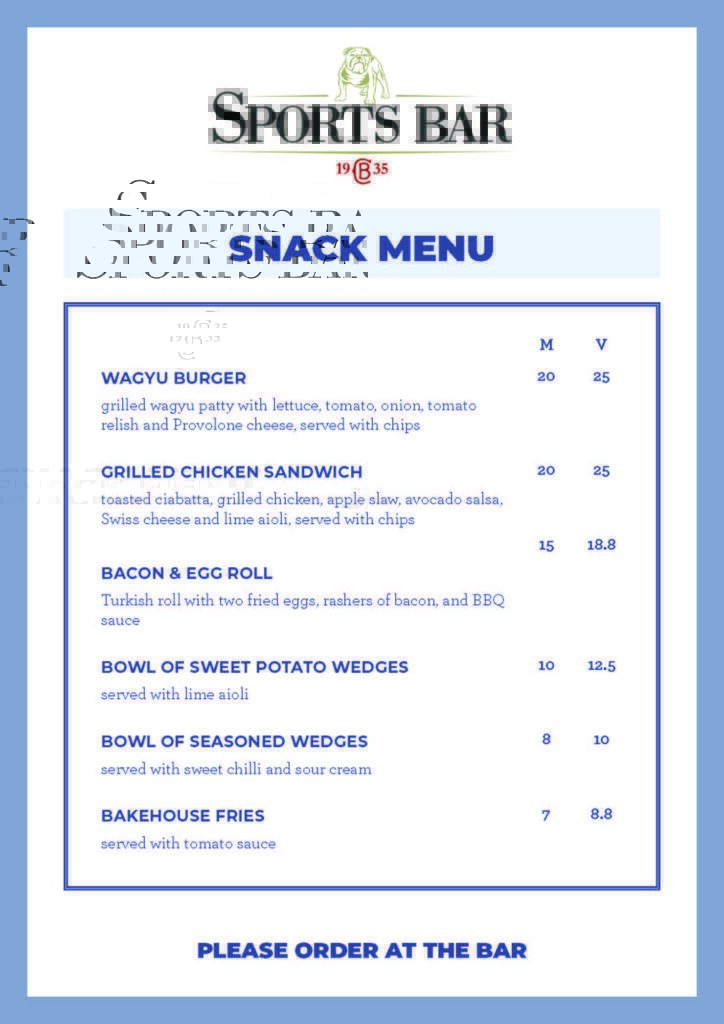 PLEASE ORDER YOUR DRINKS & SNACKS AT THE SPORTS BAR